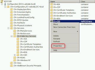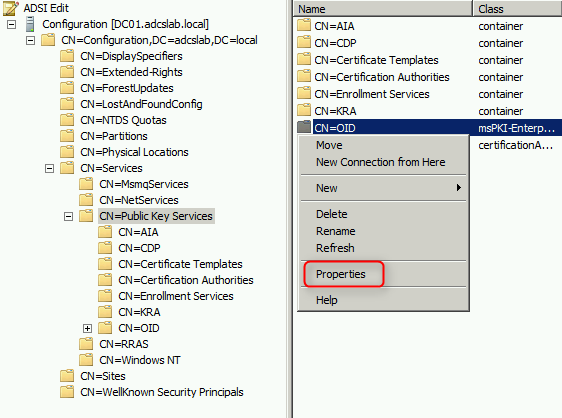 17. On central pane, right-click “CN=OID“, select “Properties“.