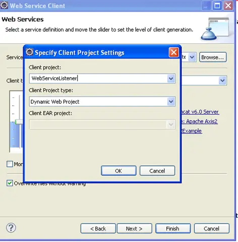 Select New Dynamic Name as WebServiceListener Project as Client Project .