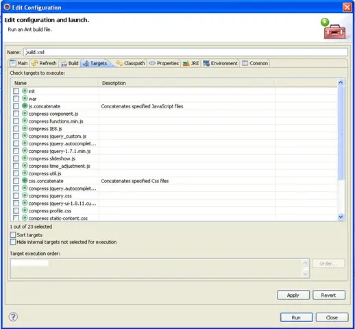 Note: If you click on second Ant build Then it gives you target options These are used for sequence of execution of targets .You can also set sequence of targets From properties .