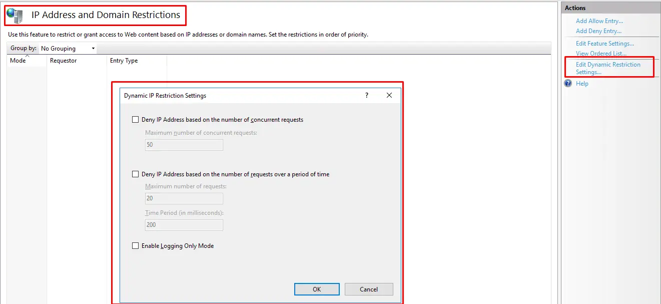 403.501 – Forbidden: Too many requests from the same client IP; Dynamic IP Restriction Concurrent request rate limit reached.