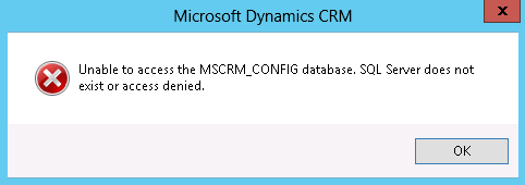 Unable to access the MSCRM_CONFIG database. SQL Server does not exist or access denied Microsoft CRM 2015